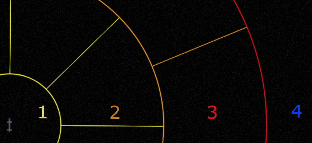 There are 4 "zones" around your ship, based on your cumulative speed.
